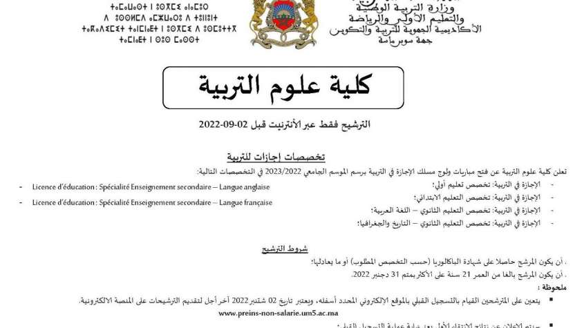 مباريات ولوج كلية علوم التربية برسم الموسم الجامعي 2022-2023