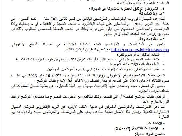 تنظم وزارة الداخلية يوم الأحد 16 يوليوز 2023 بمعاهد التكوين التقني التابعة للوزارة، وفي مراكز أخرى عند الاقتضاء، مباراة ولوج سلك تكوين التقنيين المتخصصين في شعبة البستنة والأغراس والإعداد الطبيعي