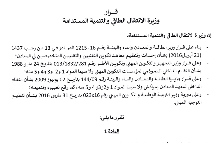 معهد المعادن بمراكش (مباراة عن طريق الانتقاء)