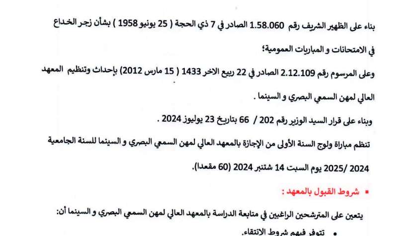 مباراة ولوج المعهد العالي لمهن السمعي البصري والسينما