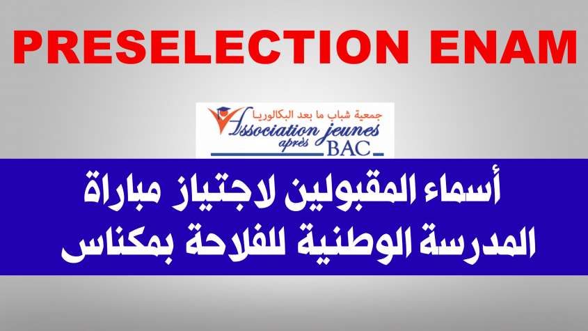 تم الاعلان عن أسماء المقبولين في مباراة ولوج المدرسة الوطنية للفلاحة بمكناس ENAM 2019 في الرابط أسفله: