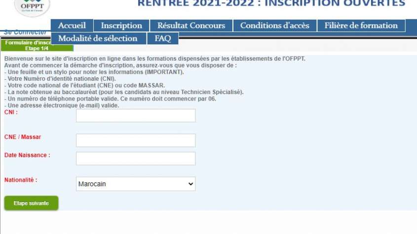 شروط التسجيل / 2021-2022 Inscription OFPPT