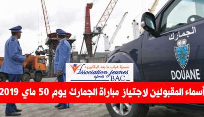 أسماء المقبولين لاجتياز مباراة الجمارك يوم 05 ماي 2019