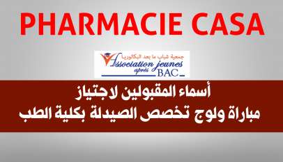 أسماء المقبولين لاجتياز مباراة ولوج تخصص الصيدلية بكلية الطب الدار البيضاء PHARMACIE CASA 2019