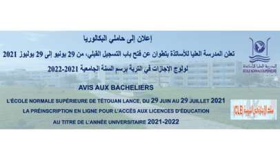 المدرسة العليا للأساتذة بتطوان للحاصلين على شهادة البكالوريا أو على دبلوم معترف بمعادلتها 2021-2022